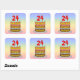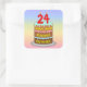 Adesivo Quadrado 24.º Aniversário: Bolo e Velas Divertidas + Nome P