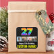 Este design de adesivo quadrado com tema de aniversário alegre e ousado apresenta um grande número de "27" com um espectro colorido de gradação inspirado no arco-íris, juntamente com a mensagem "Feliz 27.º Aniversário" e um nome de destinatário personalizável. Há também fotos que podem ser personalizadas, talvez com fotos do receptor, da família e dos amigos do destinatário e/ou do(s) remetente(s) de um presente. Os adesivos como estes podem ser distribuídos ou utilizados numa festa organizada para alguém que comemora o seu vigésimo sétimo aniversário, ou talvez utilizados no acondicionamento de presentes/presentes ou na preparação de convites para esse evento. (Fotografia © Storytree Studios, Stanford, CA.) [~Z0000670]