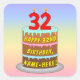 Adesivo Quadrado 32º Aniversário: Bolo e Velas Divertidas + Nome Pe
