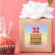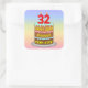 Este belo e divertido design de adesivo de quadrado de aniversário apresenta uma representação em estilo cartoon de um bolo de aniversário de três níveis com velas em forma de número no topo, mostrando a idade "32", juntamente com a mensagem "FELIZ 32º ANIVERSÁRIO", e um nome de destinatário personalizado. O plano de fundo apresenta um espectro de arco-íris pastel de várias cores inspirado em gradiente. Os adesivos como estes podem ser utilizados ou distribuídos numa festa de aniversário de comemoração do 32.o aniversário de alguém, ou talvez utilizados na preparação de convites ou presentes/presentes para tal evento. [~Z0000624]