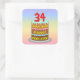 Adesivo Quadrado 34th Birthday: Fun Cake and Candles + Custom Name