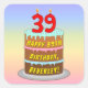 Adesivo Quadrado 39th Birthday: Fun Cake and Candles + Custom Name