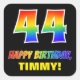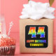 Este design de adesivo divertido, colorido e alegre, com tema de aniversário, apresenta um grande número de "44" e a mensagem "FELIZ BIRTHDAY", ambos coloridos com um padrão inspirado no gradiente do espectro do arco-íris, juntamente com um nome ousado e amarelo personalizável. O fundo é preto colorido. Os adesivos temáticos de aniversário divertidos como este podem ser usados ao embrulhar um presente ou presente para celebrar o quarenta e quarto aniversário de alguém, ou talvez possam ser entregues aos participantes numa celebração de aniversário. [~Z0000480]