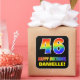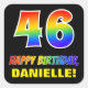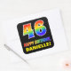 Este design de adesivo divertido, alegre e colorido com tema de aniversário apresenta um grande número de "46" e a mensagem "FELIZ ANIVERSÁRIO", ambos tendo um gradiente do espectro do arco-íris inspirado na coloração do padrão, junto com um nome personalizado amarelo ousado. O fundo é preto colorido. Os adesivos divertidos podem ser usados ao embrulhar um presente ou presente em homenagem aos quarenta e seis anos de alguém, ou talvez sejam entregues aos participantes numa celebração ou festa de aniversário. [~Z0000480]
