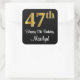 Este na moda, sofisticado e elegante design de adesivo quadrado de aniversário apresenta um grande número ordinal "47º" com um padrão de gradação tipo "faux"/imitação dourado, mais a mensagem de saudação de aniversário "Feliz 47º aniversário" e um nome personalizado numa letra estilo script. Também tem um fundo de cor preta. Os adesivos temáticos de aniversário elegantes como este podem ser usados quando se dá um presente ou presente em comemoração do 47º aniversário de alguém, ou talvez possam ser entregues aos convidados numa comemoração de aniversário. [~Z0000517]