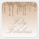 Estes adesivos quadrados apresentam uma borda superior brilhante de cintilação dourada, sobre fundo ombre dourado. As palavras "Cinquenta" e "Fabuloso" aparecem num elegante guião dourado sobreposto a um símbolo branco de ampersor.