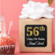 Este luxuoso, na moda, e sofisticado design de adesivo quadrado com tema de aniversário apresenta um grande número ordinal "56º", com um visual imitação/falsa inspirado em ouro, mais a mensagem de saudação de aniversário "Happy 56º Aniversário" e um nome personalizado em uma fonte estilo script. O fundo é preto colorido. Os adesivos luxuosos como este podem ser usados ao embrulhar presentes que estão sendo dados a alguém em comemoração do seu 56º aniversário, ou talvez possam ser entregues aos convidados em comemorações ou festas de aniversário. [~Z0000517]