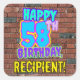 Este divertido design de adesivo quadrado com tema de aniversário apresenta a mensagem "FELIZ 58º ANIVERSÁRIO", tendo um olhar vibrante, colorido e inspirado no grafite, além de um nome de destinatário personalizado. O plano de fundo apresenta um padrão inspirado na parede do tijolo. Tangas divertidas, vibrantes e personalizadas como esta podem ser dadas como presente de aniversário, ou usadas enquanto embrulham presentes/presentes, ou talvez usadas como decorações de festas de aniversário quando celebram o 58º aniversário de alguém. [~Z0000535]