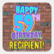 Este design de adesivo quadrado de aniversário divertido mostra a mensagem "FELIZ 59º ANIVERSÁRIO", tendo uma aparência vibrante, colorida, de grafite e arte urbana de rua inspirada, junto com um nome de destinatário personalizado. O plano de fundo apresenta um padrão inspirado na parede do tijolo. Tímulos divertidos e personalizados como este podem ser dados como presente de aniversário, ou usados enquanto embrulham presentes, ou talvez usados como decoração de festas de aniversário quando celebram o cinquenta nono aniversário de alguém. [~Z0000535]