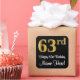 Este sofisticado, na moda, e luxuoso design de adesivo com temas de aniversário apresenta um grande número ordinal "63º", com aparência falsa/imitação de ouro, além da mensagem de saudação de aniversário "Happy 63º Aniversário" e um nome editável em uma fonte estilo script. Também tem um fundo de cor preta. Os autocolantes de na moda anos como este podem ser usados ao embrulhar um presente ou presente para alguém que comemora o seu sessenta terceiro aniversário, ou talvez possam ser entregues aos participantes numa comemoração de aniversário. [~Z0000517]