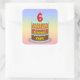 Este design de autocolante quadrado com tema de aniversário otimista e alegre apresenta uma representação em estilo cartoon de um bolo de aniversário de três níveis com uma vela em forma de número no topo mostrando a idade "6", juntamente com a mensagem "FELIZ 6 BIRTHDAY", e um nome de destinatário editável. O fundo tem um espectro multicolorido de arco-íris pastel inspirado em gradiente. Os adesivos como estes podem ser distribuídos ou utilizados numa festa realizada para alguém que comemora o seu sexto aniversário, ou talvez utilizados na preparação de convites ou presentes/presentes para tal evento. [~Z0000624]