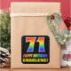 Este design de etiqueta de aniversário colorida, alegre e divertida apresenta um grande número "71" e a mensagem "FELIZ ANIVERSÁRIO", ambas coloridas com um padrão inspirado no gradiente do espectro do arco-íris, juntamente com um nome editável amarelo ousado. O fundo é preto colorido. Alguns adesivos divertidos como este podem ser usados ao embrulhar presentes que estão sendo dados a alguém em comemoração de seus setenta anos, ou talvez sejam dados aos participantes em uma festa ou celebração de aniversário. [~Z0000480]