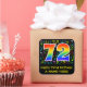 Este design de adesivo de aniversário divertido, colorido e vibrante apresenta um grande número de "72" tendo um padrão inspirado no gradiente do espectro arco-íris. Também apresenta a mensagem "Feliz 72º Aniversário", e um nome personalizado. Parte do fundo apresenta um padrão de várias notas e símbolos de música com várias cores e tamanhos. Bens de aniversário divertidos e personalizáveis como este podem ser usados como decoração de festas de aniversário, dados como presente de aniversário, ou talvez usados ao embrulhar presentes de aniversário para celebrar o de um cantor, de um músico, de um compositor de música ou do setenta e segundo aniversário de alguém. [~Z0000423]
