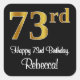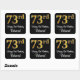 Este design de adesivo quadrado sofisticado, elegante e com temas de na moda de aniversário apresenta um grande número ordinal "73. º", com um visual imitação/falsa inspirado em ouro, mais a mensagem de saudação de aniversário "Happy 73 rd Birthday" e um nome personalizado em uma fonte estilo script. O fundo é preto colorido. Os autocolantes temáticos de na moda de aniversário como este podem ser usados para dar um presente ou presente em comemoração do 73.º aniversário de alguém, ou talvez possam ser entregues aos participantes numa comemoração de aniversário. [~Z0000517]
