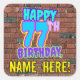 Este design de adesivo quadrado de aniversário divertido mostra a mensagem "FELIZ 77º ANIVERSÁRIO", tendo um olhar vibrante, colorido, grafite e arte urbana de rua inspirada, além de um nome de destinatário personalizado. O plano de fundo apresenta um padrão inspirado pela aparência de uma parede de tijolos. Tangas vibrantes, divertidas e personalizadas como esta podem ser dadas como presentes de aniversário, ou usadas enquanto embrulham presentes/presentes, ou talvez usadas como decoração de festas de aniversário quando se celebra o 77º aniversário de alguém. [~Z0000535]