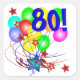 Um brilhante e divertido buquê de balão colorido, com muitas estrelas vermelhas e azuis a explodir prontas para você personalizar em qualquer idade de aniversário. Mostra "80!" em números azuis. Um excelente especial, divertida e colante colorido, favor ou selo de envelope! Mostrado é o adesivo grande do retângulo. Excelente para o grande 80 ou qualquer idade!