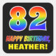 Este design de etiqueta de aniversário colorida, alegre e divertida apresenta um grande número "82" e a mensagem "FELIZ ANIVERSÁRIO", ambos tendo um gradiente de padrão inspirado no espectro do arco-íris, junto com um nome personalizável amarelo ousado. O fundo é preto colorido. Tangas divertidas como esta podem ser usadas quando embrulhar presentes que são dados a alguém em comemoração do seu oitenta segundo aniversário, ou talvez possam ser entregues aos convidados numa festa de aniversário. [~Z0000480]