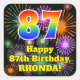Esta divertida e alegre design do adesivo quadrado com tema de aniversário apresenta um grande número de "87" tendo um padrão de inspiração colorida de gradiente do arco-íris. Também apresenta a mensagem "Feliz 87º aniversário", e um nome personalizado. O plano de fundo apresenta um padrão interessante e colorido inspirado pela aparência de fogos de artifício comemorativos que explodem. Tangas divertidas, vibrantes e personalizadas como esta podem ser dadas como presentes de aniversário, ou usadas enquanto embrulham presentes/presentes, ou talvez usadas como decorações de festa de aniversário quando celebram o 87° aniversário de alguém. [~Z0000579]