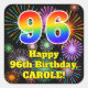 Adesivo Quadrado 96º Aniversário: Veja fogos de artifício divertido