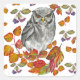 Adesivo Quadrado A aquarela cai linda coruja e botão das folhas