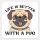Adesivo Quadrado A Vida É Melhor Com Um Pug