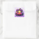 Uma adorável abóbora laranja kawaii chibi com flores roxas Adesivos Feliz Halloween. Adicione um toque fofo aos envelopes de cartões de Halloween ou sacos de lembrancinhas de festa.