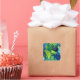 Flowing abstract design of wide brush strokes of blue with a touch of neon looking bright green that adds a pop to the entire design.