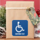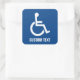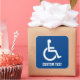 Sinal de acessibilidade. Símbolo da cadeira de rodas. Homem branco estilizado numa cadeira de rodas. Fundo azul. Custom Text.