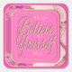 Adesivo Quadrado Afirmação Positiva Lente Dourada de Mármaco Rosa