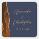 Estes elegantes e modernos adesivos de casamento exibem uma design de cor laranja queimada, aparada com brilho de ouro falso. Personalize facilmente o texto dourado em um fundo azul marinho, com os nomes dos casais na caligrafia na moda e a data na fonte sans serif.