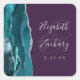 Adesivo Quadrado Agate Geode Script Teal Silver Purple Wedding