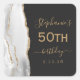 Este elegante adesivo de festa de aniversário 50ª e moderno apresenta uma cinza e uma coloração branca de água, agata e design, aparados com falso brilho dourado. Personalize facilmente o texto dourado num fundo preto ardente com o nome do convidado de honra, o ano de aniversário e a data.
