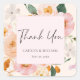 Adesivo Quadrado Agradecimento de Casamento Elegante com Flores Ros