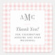 Adesivo Quadrado Agradecimento Monograma Xadrez Rosa e Branco