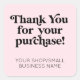 Adesivo cor-de-rosa de agradecimento por sua compra, estilo minimalista moderno para pequenas empresas. Mensagem personalizada na parte inferior pode ser adaptada com o nome da sua loja/pequena empresa, site ou outro texto personalizado.