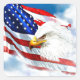 A imagem da cabeça orgulhosa de uma águia é sobreposta à bandeira americana acenando no céu. Esta design patriótica é uma imagem inspiradora para todos aqueles que amam os EUA e os seus símbolos de liberdade.