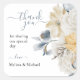 Um bom adesivo de "obrigado" para favores de casamento, apresenta o mesmo design azul que a suíte de casamento.