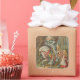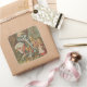 Um adesivo quadrado com uma imagem vintage de Alice e do Cavaleiro Branco.