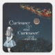 Alice, do livro infantil Alice no País das Maravilhas, olha para o céu azul à noite em Papais noeis antigos e seu cheio de brinquedos, juntamente com sua citação do livro "Curiouser and curiouser! chorou Alice" e uma lua adorável para fazer este adesivo de Natal mágico e divertido. Itens correspondentes estão disponíveis na minha loja Zazzle.