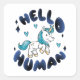 Um unicórnio-design bonito com um adorável unicórnio bebê com a citação "Olá humano". Uma combinação perfeita para cada amante unicórnio e dono de animais de estimação. Ideia de presente de excelente para adultos e crianças.