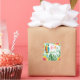Os autocolantes tropicais (ou selos de envelope) apresentam um papagaio de cor aquática, flores de hibisco e folhas de palma verde com uma saudação colorida Aloha em tons de rosa, laranja, amarelo, verde e azul aqua. Trabalho de arte por ações da KL