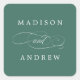 Lindos adesivos de casamento personalizados, com uma fonte elegante e marcadores para os nomes dos casais contra um fundo verde. Use os adesivos personalizados para favores de casamento, selos de envelopes, reservas de sucata e muito mais!