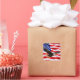 Celebrate American pride with this bold square sticker featuring a soaring bald eagle set against the stars and stripes of the U.S. flag. Designed to stay clear and recognizable even at small sizes, this patriotic sticker is perfect for envelopes, notebooks, laptops, planners, care packages, and everyday display.