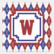 Argyle vai de 8 bits e Americana com este esquema de cor vermelho, branco e azul. Um ponto de contraste leve e leve adiciona um toque de retrorreflector. Personalize o monograma com o inicial apropriado para um toque personalizado.