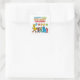 Este adesivo quadrado alegre apresenta Elmo, Big Bird e Cookie Monster da Rua 123 cercados por balões coloridos e enfeites festivos. Perfeito para adicionar um toque divertido a lembrancinhas de festa, sacolas de presentes ou decorações, este design vibrante é ideal para celebrações de aniversário temáticas da Rua 123. Personalizável para um toque pessoal, é divertido e funcional.