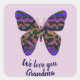 Quer se chame Nana, vovó, avó, ou qualquer outro nome, ela tem um lugar especial em nossos corações. Diga a sua avó que ela é especial com este adesivo brilhante. Borboletas coloridas flutuam ao redor do texto para adicionar cor a este adesivo quadrado. "Nós te amamos, vovó" pode ser facilmente personalizada para satisfazer seus desejos. Estes autocolantes estão prontos para enfeitar envelopes ou pacotes empacotados e enviados com amor.