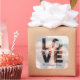 Adesivo de foto moderno e simples com o nome da sua família ou outro texto em caligrafia elegante e uma sobreposição branca translúcida com a palavra AMOR recortada. Basta carregar sua foto favorita e adicionar seu texto! Perfeito para presentes do Dia dos Namorados, casamentos, save the dates ou adesivo chic de agradecimento para os pacotes de sua empresa. Exclusivamente projetado para você pelo Happy Dolphin Studio. Se precisar de ajuda ou de produtos correspondentes, entre em contato conosco através do nosso chat da loja!