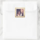 O design do adesivo de foto quadrada apresenta uma foto de noivado ou casamento favorita emoldurada por um padrão de amor em escrita moderna e um fundo metálico dourado. Dica: corte sua foto para o formato quadrado antes de carregá-la no site.