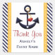 A âncora temática náutica é a favor do obrigado que você etiqueta e adesivos com uma âncora azul marinho com uma estrela branca e um coração vermelho pendurados em uma corda amarela flanqueada por uma faixa diagonal e uma faixa amarela com haste costura impressa. Os adesivos personalizados podem ser personalizados com o nome do evento ou o que você quiser dizer. Trabalho de arte © Chrissy H. Studios, LLC. Todos os Direitos Reservados.