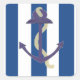 Um design náutico legal com uma âncora azul com corda sobre fundo listrado azul e branco.